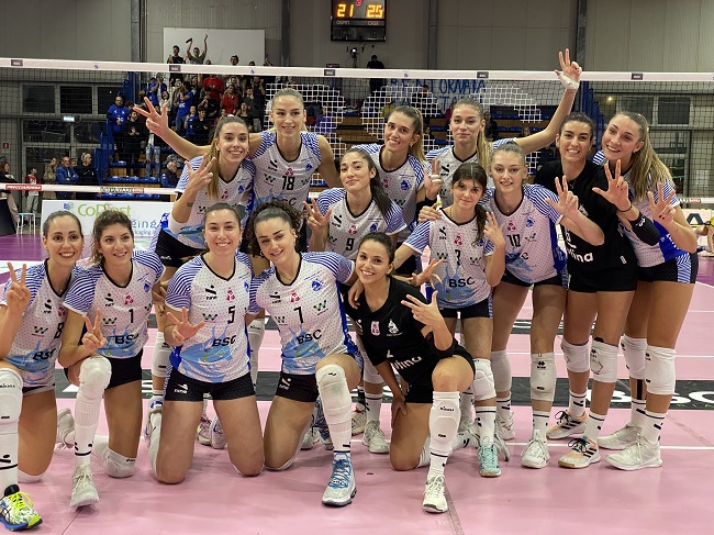 L’avvio di secondo set è una fotocopia del primo: la BSC scappa subito (3-0), poi Cremona riporta tutto in parità (5-5). Il set cresce di intensità: K. Kullerkann ha il braccio caldo e l’Esperia passa avanti (8-10). Civitico fa buona guardia a rete e con due belle giocate riporta il match in parità (11-11). K. Kullerkann continua a fare male alla difesa sassolese e sul 12-14 Coach Venco decide di fermare il gioco. Sassuolo esce bene dal time out e piazza il break: la giocata di fino di Pomili vale il 16-14 ed il contro time out ospite. Manfredini in fast firma il 20-18, ma Cremona riporta – di nuovo – il set in pareggio (20-20). Il muro di K. Kullerkann vale il +2 ospite (20-22), ma la BSC non si scompone: le padrone di casa prima pareggiano (22-22), poi approfittano di due errori tra le fila ospiti per chiudere 25-22.