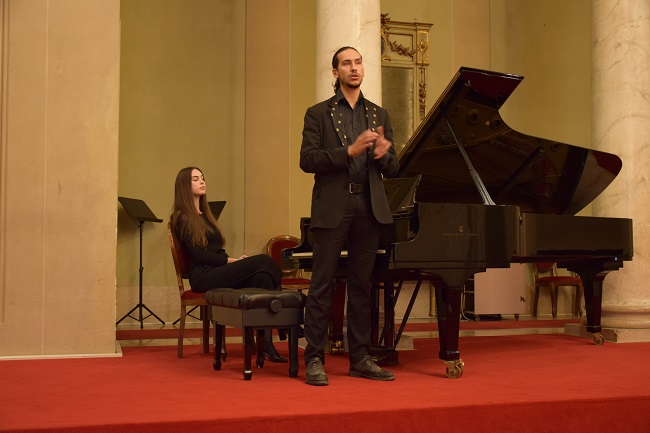 Domenica 18 ottobre alle ore 11.00 in una sala completamente sold out da giorni e con decine di richieste di biglietti fino all’ultimo minuto nel rispetto di tutte le normative ministeriali per il contenimento del coronavirus, si è svolto il concerto unico nel suo genere del pianista e baritono ravennate Raffaello Bellavista che ha creato in chiave simbolica questo programma introducendo brevemente ogni composizione legata alla figura del poeta Dante Alighieri.
