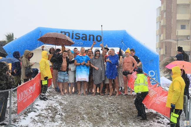 MISANO ADRIATICO (RN) – La neve non ha fermato i temerari che questa mattina si sono ritrovati nelle acque di Misano Adriatico, davanti a Piazzale Roma, per il Tuffo della Befana.