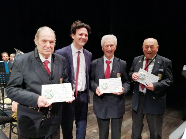 In apertura l’assessore Mattia Morolli ha consegnato un attestato di ringraziamento a Tonini Mario, Flicorno tenore, Pazzini Graziano e Manfroni Novario, sax tenore, tre musicisti della Banda che hanno in comune oltre alla passione e all’impegno in Banda, costante e duraturo, il fatto di aver brillantemente superato gli 80 anni. Particolarmente coinvolgente ed emozionante l’esibizione solista, nel brano Il Postino di Bacalov, del giovanissimo Samuele Bellanova, primo clarinetto delle Banda Giovanile. Ciò dimostra come nell’esperienza musicale della banda l’intergenerazionalità sia un valore portante e come sia particolarmente importante l’attività della scuola di musica e della Banda giovanile.