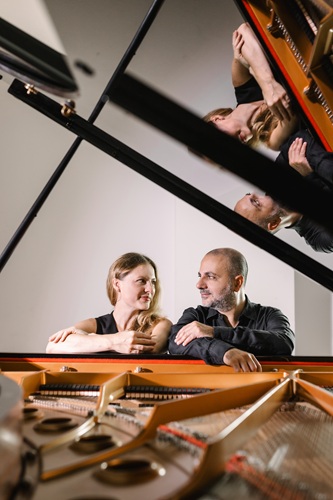 Esplorando diverse epoche e linguaggi musicali, verranno messe in luce le potenzialità espressive del pianoforte a quattro mani: intimità e grandiosità, leggerezza e dramma, ironia e poesia. Il programma si aprirà con il Rondò in La Maggiore D 951 di Franz Schubert, pagina brillante e luminosa, ricca di eleganza melodica, per proseguire con una trascrizione per pianoforte a quattro mani delle “Fontane di Roma” di Ottorino Respighi, poema sinfonico che evoca con colori vivaci quattro celebri fontane romane in diversi momenti della giornata. Si ritornerà poi a Schubert con la intensa “Fantasia in fa minore” D 940, opera in cui malinconia, slancio drammatico e struggente cantabilità si fondono in una struttura unitaria e visionaria. Spazio all’ironia con i “Trois Morceaux en forme de poire” di Erik Satie, in cui l’autore gioca scherzosamente con le forme musicali e con le convenzioni accademiche. Chiuderà il concerto “La Valse” di Maurice Ravel: un vortice sonoro che, partendo dall’eleganza del valzer viennese, si trasforma progressivamente in una danza travolgente, tra brillantezza virtuosistica e sottile inquietudine.