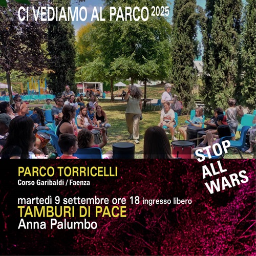 FAENZA (RA) – Martedì 9 settembre alle ore 18 il Parco Torricelli in Corso Garibaldi a Faenza accoglierà un’esperienza musicale comunitaria, aperta a tutte e tutti: si tratta di Tamburi di Pace, cerchio di tamburi guidato dalla musicista e facilitatrice Anna Palumbo nell’ambito del progetto di socialità Ci vediamo al Parco a cura del Teatro Due Mondi.