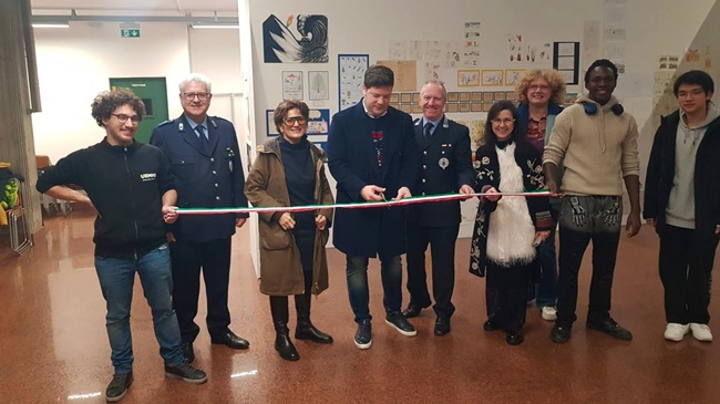 Nella foto: l’Assessore allo Sport Kevin Bravi, il Vicecomandante della Polizia Locale di Forlì Andrea Gualtieri, il Coordinatore organizzativo del progetto Paolo Rivalta, la Vicepresidente del CONI regionale Emilia Romagna Milva Rossi e una rappresentanza del Liceo Artistico e Musicale Canova con le professoresse Alessandra Gellini e Francesca Fiorentini.