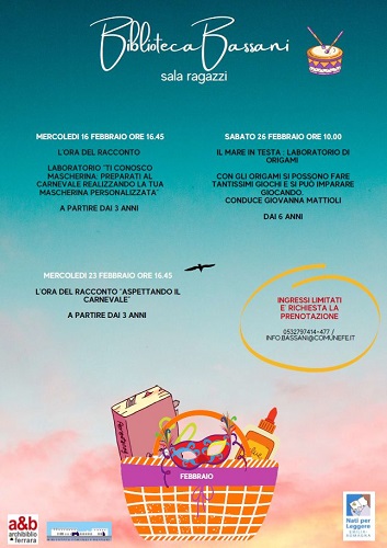 FERRARA – Narrazioni, letture animate e laboratori creativi: a febbraio tornano gli appuntamenti per bambini e ragazzi alla biblioteca comunale Giorgio Bassani di via Grosoli 42 a Ferrara (zona Barco).