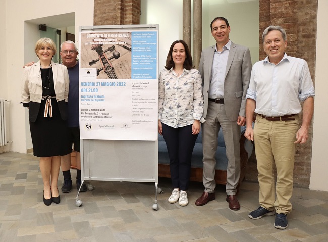 FERRARA – È stato presentato lunedì 23 maggio 2022, nella Sala Arazzi del Comune di Ferrara – presenti l’assessore alle Politiche sociali del Comune di Ferrara Cristina Coletti, il presidente dell’associazione Viale K Domenico Bedin, il musicista dell’Orchestra Antiqua Estensis Franco Sartori, Corrado Rotini, direttore Attività Produttive Sito Ferrara LYB (LyondellBasell) e la responsabile comunicazione Italia LYB Loredana Elia – il progetto “Un Pasto per Biglietto”, concerto di beneficenza organizzato in occasione dei 30 anni dell’Associazione Viale K, grazie alla collaborazione con Antiqua Estensis e LyondellBasell.