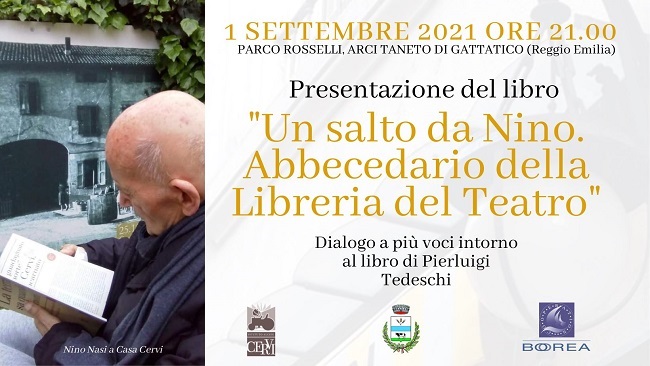 GATTATICO (RE) – Nell’ambito delle iniziative del Circuito Off del Festival Teatrale di Resistenza, mercoledì 1 settembre alle ore 21 al Parco Rosselli dell’Arci di Taneto di Gattatico (Reggio Emilia), si svolgerà la presentazione del libro “Un salto da Nino. Abbecedario della Libreria del Teatro” di Pierluigi Tedeschi (Consulta LibrieProgetti), promosso da Istituto Alcide Cervi, Comune di Gattatico e Boorea Emilia Ovest.