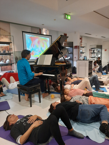 Il concerto di Emiliano Toso sarà un’esperienza di armonizzazione, dove la musica a 432 Hz si intreccerà con i principi della bioginnastica. Attraverso la guida di Stefania Tronconi, i partecipanti saranno coinvolti in un “concerto nel corpo” per riportare il benessere in ogni persona, accordare il corpo alla frequenza del respiro, seguendo un bioritmo naturale e spontaneo. Il pianoforte accordato a 432 Hz e le note di “Translational Music” di Emiliano Toso eseguite dal vivo creeranno una spirale bioenergetica che coinvolgerà profondamente corpo e mente, risuonando con la frequenza del respiro e favorendo l’omeostasi.