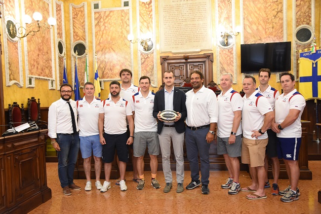 PARMA – Una delegazione della Nazionale Russa di Rugby composta dallo staff tecnico, dal head coach gallese Lyn Jones, dal capitano e dal team manager delle Zebre Rugby Andrea De Rossi è stata ricevuta dal vice sindaco, con delega allo sport, Marco Bosi in Sala del Consiglio del Municipio.