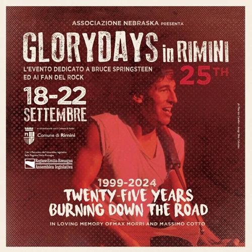 1999-2024: 25 years burning down the road, L’evento più atteso dai fan di Bruce Springsteen, che raduna centinaia di appassionati provenienti da tutta Italia ed Europa per assistere all’evento sotto il segno della musica del rocker del New Jersey. Anche quest’anno l’evento è ospitato alla Corte degli Agostiniani, al cinema Fulgor, al Rockisland e in alcuni locali della città.