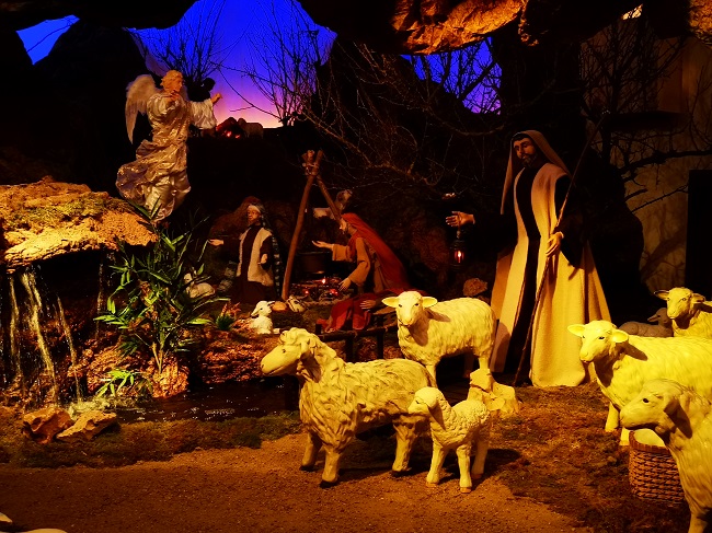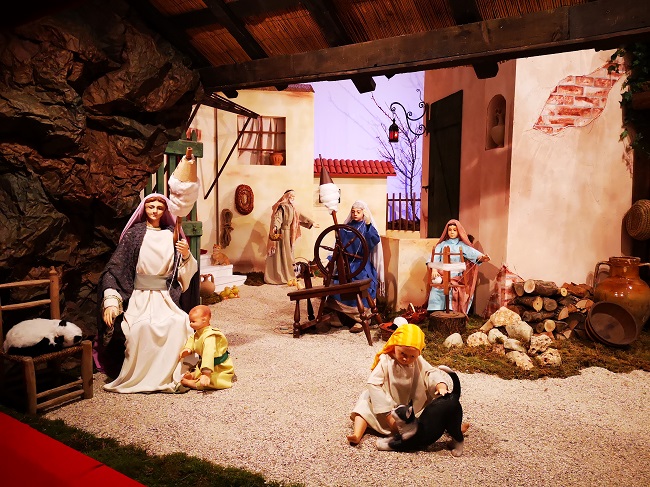 Un presepe che si svela un po’ alla volta e infatti dal buio della notte che, prodigiosa, si apre la tenda dell’umile capanna dove Maria porge Gesù Bambino verso il visitatore in un momento di intima e sincera emozione.