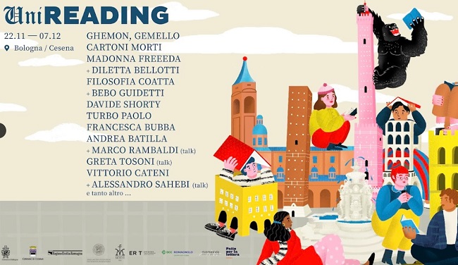 Uni Reading è patrocinato dalla regione Emilia-Romagna, dal Comune di Bologna e dal Comune di Cesena, e rientra nel Patto per la Lettura di Bologna e Cesena. In collaborazione con ERT Emilia Romagna Teatro Fondazione, Mismaonda, Fondazione del Monte, UniRadio. Main sponsor: Credito Cooperativo Romagnolo
