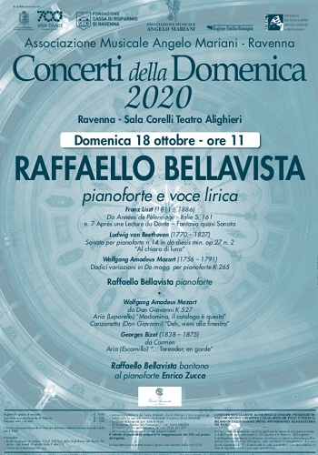 Al Teatro Alighieri di Ravenna debutterà nella doppia veste di concertista e baritono un’artista che, dopo i riconoscimenti del MEI e di altri importanti festival, si sta imponendo come un unicum nel panorama musicale nazionale: Raffaello Bellavista è uno dei pochi artisti in grado di coniugare canto lirico e concertismo pianistico, tale connubio può creare sinergie interessanti ed originali, non a caso l’eclettico artista si cimenta anche nell’ambito del panorama crossover.