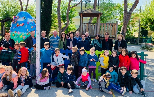 Così come accaduto a Natale con il progetto Green Christmas, uova di Pasqua giganti sono state posizionate in cinque quartieri della città – grazie alla collaborazione dei diversi buon vicinato – e decorate, con la cura e la partecipazione delle insegnanti, dai bambini delle scuole dell’infanzia comunali e paritarie. Per la prima volta una delle installazioni è stata collocata alla casa Pullè e i bimbi questa mattina hanno fatto festa insieme ai nonni della residenza.