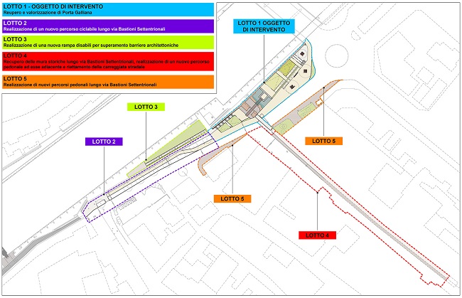 Con questo intervento, in particolare, si darà esecuzione alle opere strutturali per il sostegno della sede stradale Via Bastioni Settentrionali mediante una paratia di micropali, per poi intervenire sia sulla lastra di copertura sul collettore novecentesco che per la realizzazione di un ramo di fognatura bianca in Via Bastioni Settentrionali (tra le vie Cavalieri e Porta Galliana).