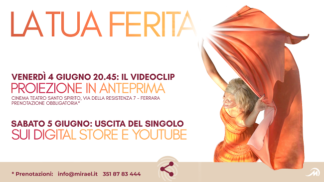 SABATO 5 GIUGNO 2021 alle ore 12 il videoclip sarà pubblicato sul canale You Tube Mirael Official https://www.youtube.com/mirael e nella medesima giornata il singolo uscirà sui digital stores. Da ora è possibile pre salvare il brano su Spotify al seguente link https://save-it.cc/imusician/la-tua-ferita e inserirlo nelle proprie playlist.