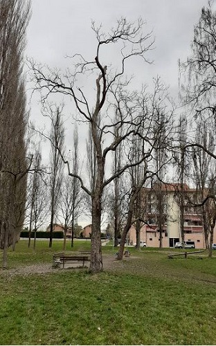 – in via Bologna (piazzale della Cappella Revedin): a seguito di indagini di stabilità eseguite sul pioppo situato a lato della Cappella è emerso che la presenza di un’infezione fungina al colletto e nelle radici ha causato gravi alterazioni interne alla pianta, tali da renderne necessaria la rimozione;