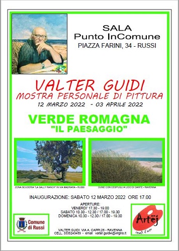 Sabato 12 marzo 2022 alle ore 17 presso sala Punto InComune, in piazza Farini 34 a Russi, verrà inaugurata la sua personale dal titolo “Verde Romagna ‘Il Paesaggio’”.