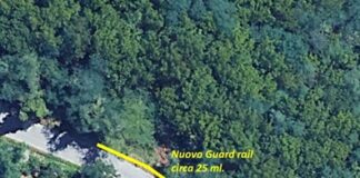 Sicurezza stradale: montaggio del guard rail in un tratto di via...