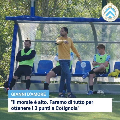 Gianni D’Amore, allenatore del Victor San Marino, dichiara: “Il pareggio ottenuto contro il Tropical Coriano ci ha lasciato un po’ di amaro in bocca perché credo che avremmo meritato la vittoria per quanto visto in campo, ma il risultato va accettato e bisogna rimanere concentrati in vista della prossima sfida. La partita a Cotignola sarà difficile perché gli avversari sono in cerca di punti salvezza e avranno motivazioni altissime, ma le nostre dovranno essere superiori alle loro e dovremo fare di tutto per ottenere i tre punti. Tutti i giocatori si stanno allenando benissimo per poter tornare alla vittoria: il morale è alto e ci faremo trovare pronti”.