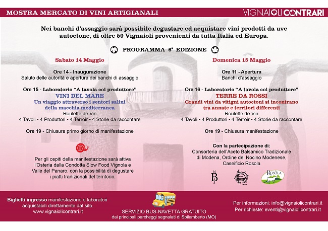 - Organizzazione: Vignaioli Contrari, Slow Food “Vignola e Valle del Panaro”, Comune di Spilamberto
