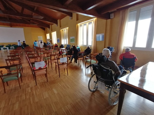 “Non ci sono state avversità né effetti collaterali nel breve periodo sia negli operatori sia nei pazienti della CRA che hanno ricevuto il vaccino, per la maggior parte in carrozzina e accompagnati – dichiara la Direzione di Villa Pineta -. Tutto si è svolto nel rispetto del distanziamento nell’auditorium, diviso in percorsi e settori che hanno ospitato le diverse operazioni: anamnesi, preparazione del vaccino, vaccinazione, osservazione del paziente post vaccino. Predisposta anche l’area di Primo Soccorso, con la presenza di un infermiere dedicato all’osservazione dei vaccinati”.