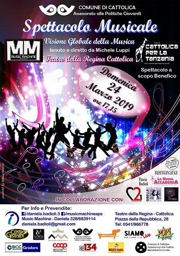 CATTOLICA (RN) – Domenica 24 marzo, alle ore 17.15 presso il Teatro della Regina di Cattolica, andrà in scena lo spettacolo musicale “Visione Globale della Musica” tenuto e diretto dall’artista Michele Luppi, tastierista e corista del gruppo internazionale Whitesnake. L’appuntamento è organizzato dall’Associazione di promozione sociale “Music Machine” e patrocinato dall’Assessorato alle politiche giovanili del Comune di Cattolica. L’evento ha anche uno scopo benefico e parte del ricavato sarà devoluto all’Associazione “Cattolica per la Tanzania”. Quest’anno, inoltre, si conta la collaborazione di ben quattro scuole di danza e altre realtà operanti nel comprensorio.