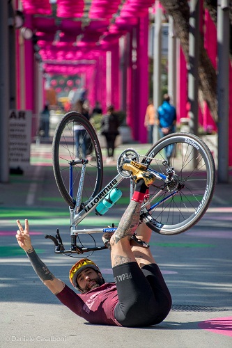 RICCIONE (RN) – E’ saltato fuori con il sole e tra i pois anche Vittorio Brumotti per la Primavera del Giro, oggi in città su invito del Comune per raccontare a modo suo una stagione dedicata alla bici.